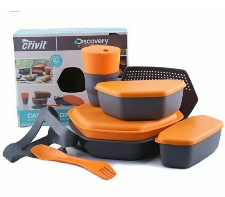 کمپانی Crivit ست ظروف 8 تکه خود را جهت سرو غذا در برنامه های کوهنوردی و کمپینگ طراحی و روانه بازار کرده است. طراحی به گونه ایست که کلیه ظروف آن تنها فضایی به ابعاد 21 / 18 / 5.2 سانتی متر (طول / عرض / ارتفاع) را در کوله پشتی شما اشغال خواهد نمود، همچنین به سبب استفاده از مواد اولیه ویژه وزن این ست نیز بسیار پایین و در حدود 395 گرم می باشد. این ست که شامل 8 تکه می باشد کلیه نیازهای شما را برای حمل و میل نمودن یک وعده غذایی در طبیعت فراهم می نماید .🔴..یکی از رسالت های کمپانی های اروپایی از جمله Crivit در ساخت محصولات خود استفاده از مواد اولیه سالم و عاری از هر نوع ماده مضر برای سلامتی است. ست ظروف 8 تکه Crivit نیز از این قاعده مستثنی نیست و در ساخت ظروف آن از بهترین و سالم ترین مواد اولیه استفاده شده است. کلیه ظروف پلاستیکی این ست از جنس پلی پروپیلن ساخته شده اند، این ظروف علاوه بر سبکی و مقاومت بالا کاملا عاری از ماده ی Bisphenol-A هستند و به هیچ عنوان بوی مواد غذایی را جذب نمی کنند. همچنین Crivit با استفاده از ترکیبات خاصی که در ساخت این ظروف به کار برده است این امکان را فراهم آورده تا ظروف پلاستیکی این ست هم در برابر مواد غذایی گرم و هم در برابر مواد غذایی سرد مقاوم باشند. از دیگر ویژگیهای مهم این ست ظروف می توان به قابلیت استفاده از این ظروف در مایکروویو اشاره نمود. این ست که قابلیت شت و شو در ماشین ظرف شویی را نیز دارد به دلیل زاویه های منحنی شکل ظروف آن به سادگی تمیز می شود.
