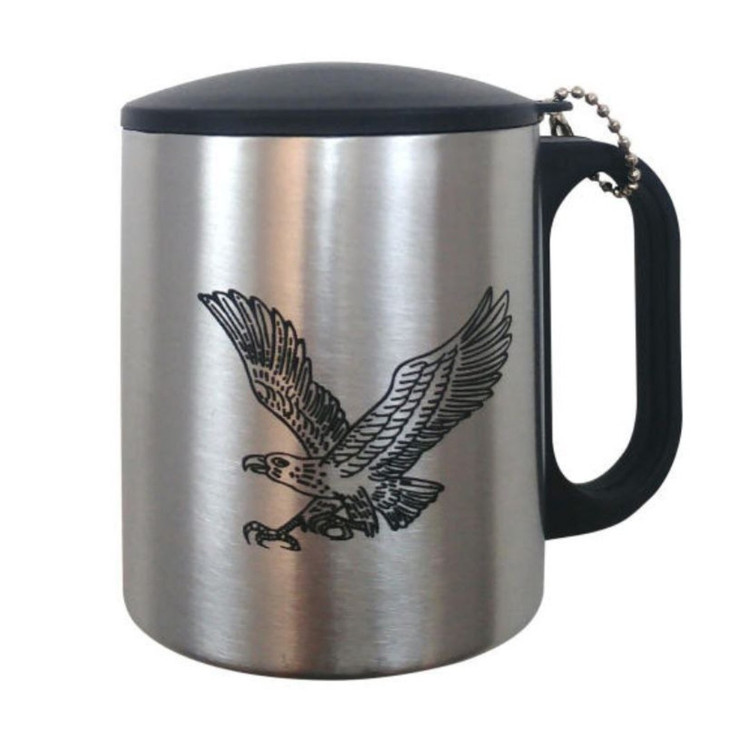 لیوان استیل دوجداره درب دار طرح عقاب موجود در این صفحه بسیار مقاوم بوده و کیفیت خیلی بالایی دارد. این محصول بدنهای استیلی داشته و مایعات سرد را در خود خنک، و مایعات گرم را در خود گرم نگه میدارد. لیوان استیل دوجداره درب دار طرح عقاب موجود در این صفحه طول عمر بسیار بالایی دارد و شکل ظاهری آن نیز زیباست.