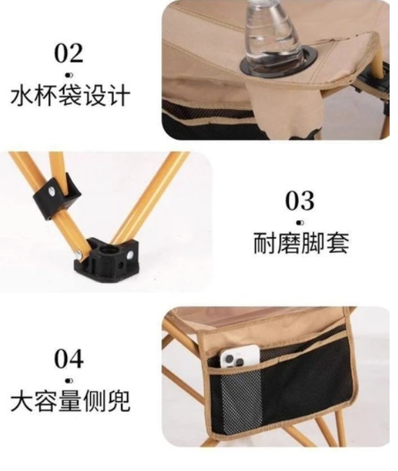 3. **جنس پارچه**: این صندلی از پارچه برزنتی مقاوم 600D ساخته شده است که ضد آب و بسیار با دوام است. این جنس علاوه بر مقاومت بالا در برابر آسیبهای محیطی، راحتی و تنفس پذیری مناسبی نیز دارد.