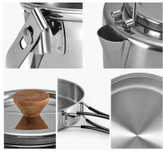 دستههای مقاوم و ایمن: دستههای ظروف از استیل ضد زنگ با روپوش سیلیکونی ساخته شدهاند که علاوه بر مقاومت بالا، از دست شما در برابر حرارت محافظت میکند و استفاده از ظروف را راحتتر و ایمنتر میسازد.