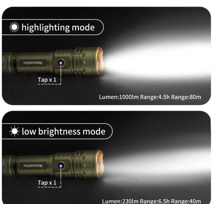 این چراغ قوه توانایی تولید نور با شدت 1000 لومن را دارد که آن را به ابزاری مناسب برای نوردهی در شرایط تاریک یا محیطهای کمنور تبدیل میکند. شدت نور بالا باعث میشود که دید شما در فاصلههای دورتر هم بهبود یابد.