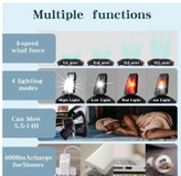 کمپینگ و کوهنوردی: این دستگاه برای روشنایی شبانه و همچنین ایجاد باد ملایم در طول شب یا هنگام استراحت بسیار مفید است. چراغ آن میتواند محیط چادر شما را روشن کند و پنکه برای تهویه هوا در شرایط داغ یا مرطوب به کار میرود.