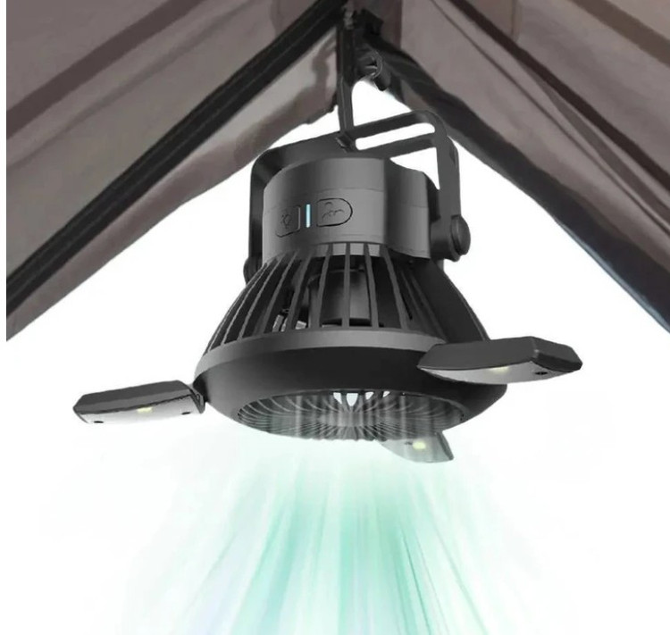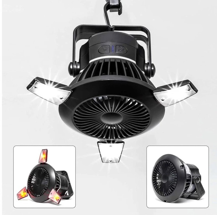 استفاده در چادر: ترکیب پنکه و چراغ برای استفاده در داخل چادرهای کمپینگ بسیار مناسب است تا هم تهویه مطبوع ایجاد کرده و هم فضای داخلی چادر را روشن نگه دارد.