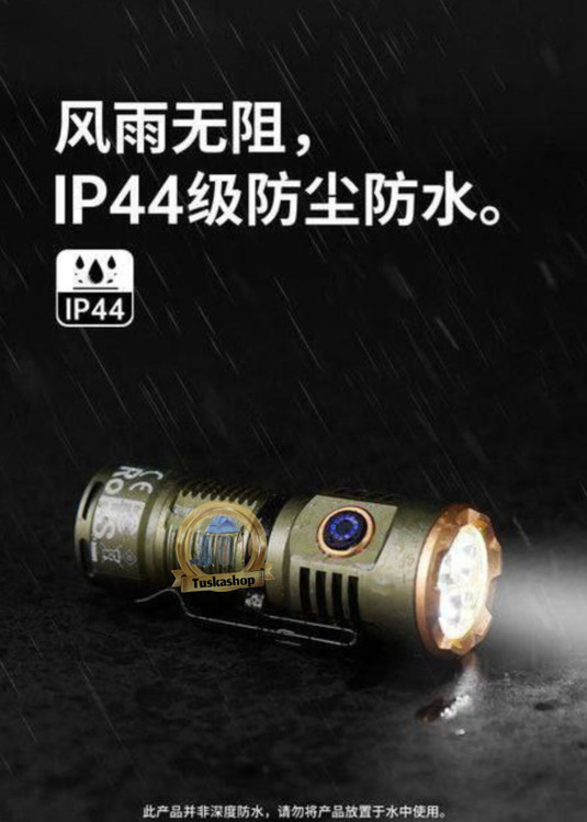 6. استاندارد ضد آب IP44: این چراغ قوه با استاندارد ضد آب IP44 ساخته شده است که به این معنی است که در برابر پاشش آب از جهات مختلف مقاوم است. به همین دلیل میتوانید از این چراغ قوه در بارانهای سبک یا شرایط مرطوب استفاده کنید.