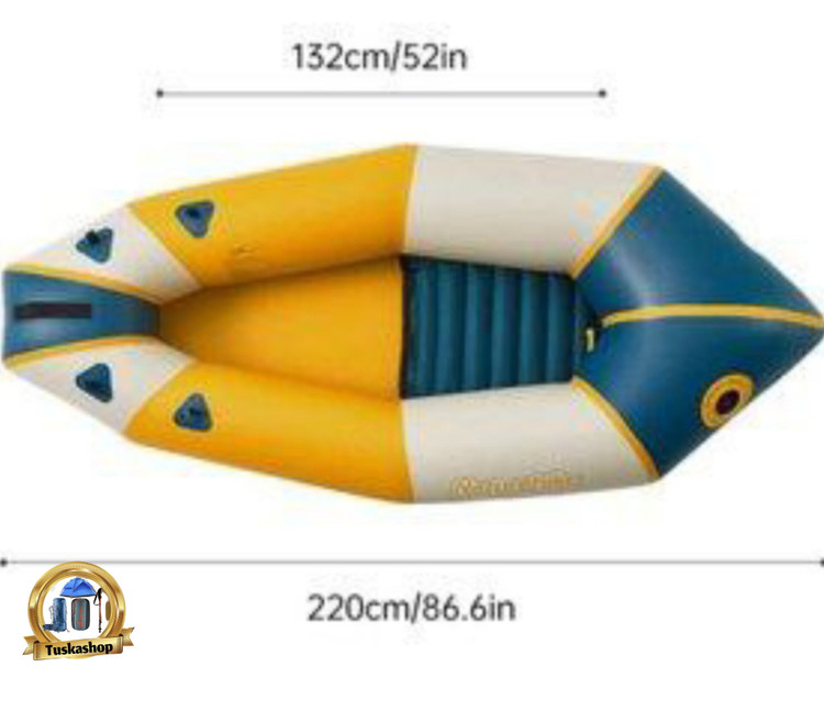بدنه قایق از نایلون TPU دولایه ضخیم شده و پارچه 210D مقاوم در برابر سایش و پارگی ساخته شده است. این ترکیب مواد، قایق را در برابر ضربات و سایشهای احتمالی در محیطهای مختلف مانند سنگها، شاخههای درخت و سایر موانع مقاوم میسازد.