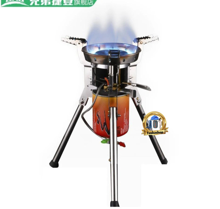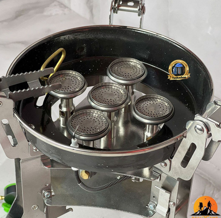 اجاق دارای بادگیر دور شعله است که در مواقع باد شدید به حفظ و افزایش کارایی شعلهها کمک میکند و پخت و پز را در شرایط مختلف محیطی راحتتر میسازد.