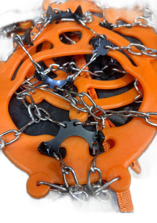 کرامپون ژله ای 8شاخه زنجیر کفش ابزاری عالی برای کوهنوردی است که به سطح لغزنده چنگ می زند و جنس فولاد ضد زنگ و مقاوم این کرامپون در شرایط سخت زمستانی عملکرد خوبی دارد