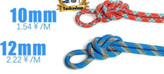 این طناب در دو قطر مختلف ارائه میشود: 12 میل و 10 میل. انتخاب قطر طناب بستگی به نوع استفاده شما دارد. برای فعالیتهای سنگینتر و نیاز به مقاومت بیشتر، طناب 12 میل مناسبتر است، در حالی که طناب 10 میل برای استفادههای سبکتر و راحتتر کاربرد دارد.