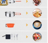 - مناسب برای خانوادههای کوچک: این ست برای خانوادههای 1 تا 3 نفره کاملاً مناسب است و تمام نیازهای پخت و پز در سفرهای کمپینگ را پوشش میدهد.