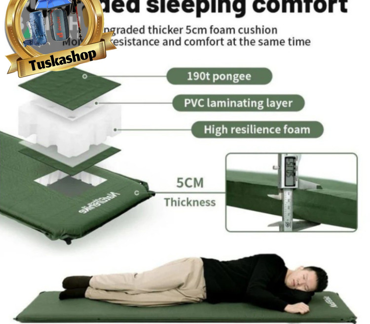 ✅ ضخامت 5 سانتیمتری این تشک، راحتی بسیار خوبی در هنگام خواب فراهم میکند و فشار واردشده از سطح زمین را کاهش میدهد. این ضخامت مناسب برای کمپینگ در سطوح سنگی یا ناهموار است.