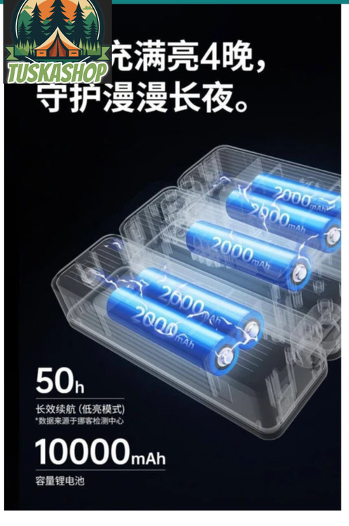 باتری قدرتمند 10000 میلیآمپری تا ۵۰ ساعت نوردهی در حالت کممصرف فراهم میکند. این یعنی در طول سفرهای چند روزه نیازی به شارژ مداوم ندارید. علاوه بر این، میتونید با استفاده از خروجی USB دستگاههای دیگهتون مثل گوشی یا هدلامپ رو شارژ کنید، پس نقش یک پاوربانک رو هم ایفا میکنه.