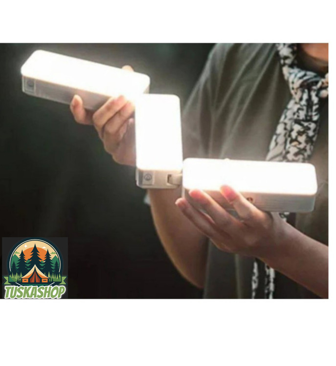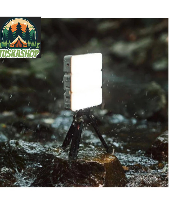 این چراغ با طراحی تاشو و مغناطیسی ساخته شده که بسیار کاربردی و کمجا است. وقتی جمع میشود، ابعادش فقط ۱۴۶×۱۴۱×۳۵ میلیمتر است و به راحتی در کولهپشتی جا میگیرد. پایههای مغناطیسی باعث میشوند چراغ را به سطوح فلزی بچسبانید، مثلاً داخل چادر، بدنه خودرو یا تیرآهن.