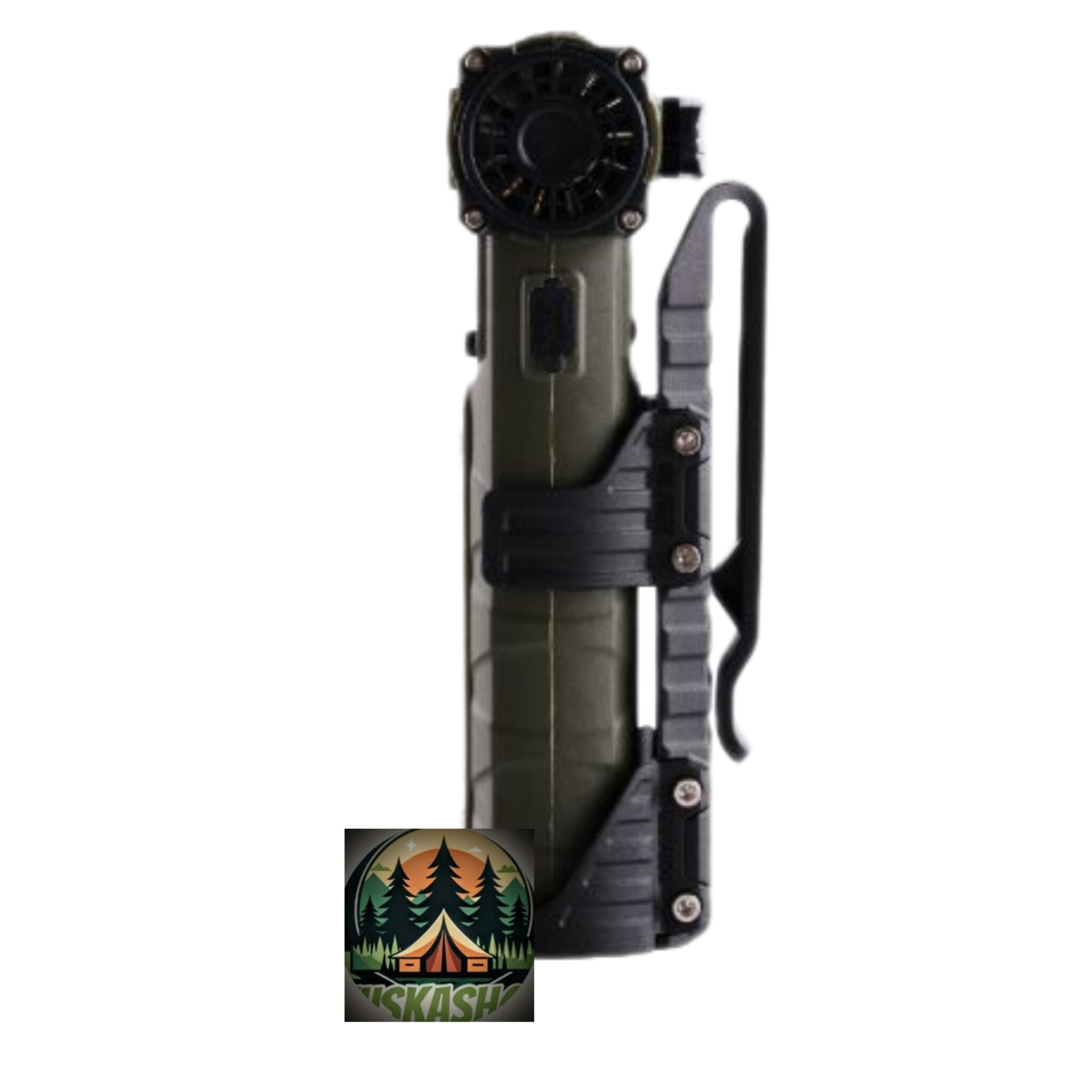 طراحی مقاوم و ارگونومیک: جنس بدنه از پلاستیک ABS صنعتی یا فلز فشرده، وزن سبک (حدود 313 گرم) و طراحی نظامی/ارتشی با دسته ارگونومیک و پایه سیلیکونی ضد لغزش.