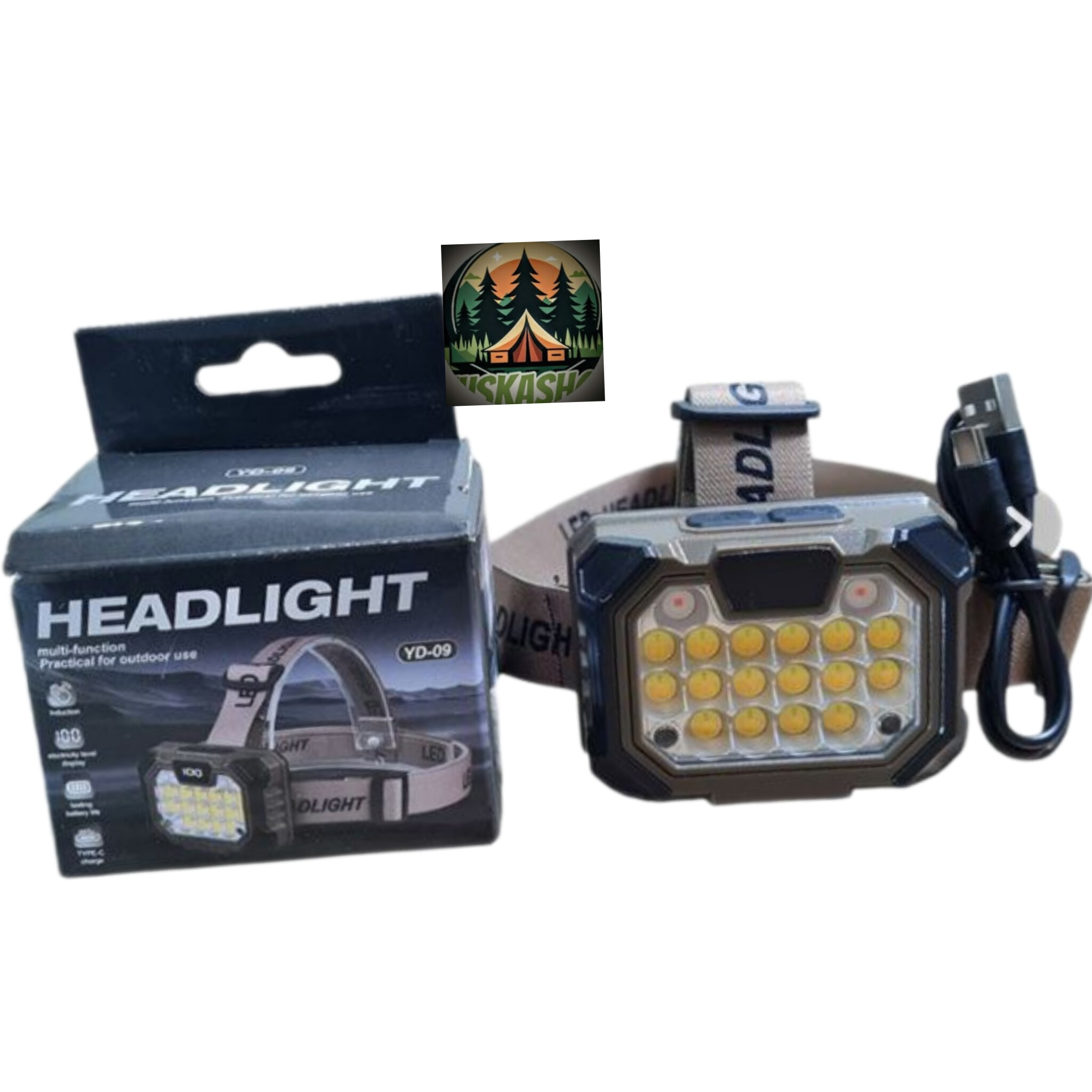 هدلایت چراغ پیشانی شارژی با نشانگر شارژ سنسوردار 5 حالته مدل YD-09