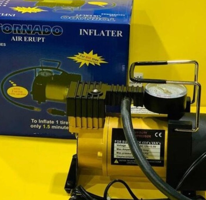 پمپ باد تورنادو یکی از وسایل و ابزارهای کاربردی جهت تعمیرات ماشین می باشد پمب باد فندکی دارای انواع مختلفی است از این رو با توجه به ویژگی های مناسبی که دارد پمپ باد فندکی تورنادو جهت تولید میزان باد میزان قدرت متفاوتی دارند برای باد کردن آن انواع وسایل دوچرخ خودرو توپ و انواع وسایل بادی استفاده میشودوبرای سفر با خودر وسیله ای کوچک برای شما به ارمغان میآورد
